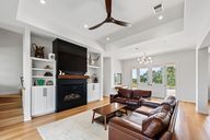 Modern fireplaceLoft areaHill country sunsetsDedicated office spaceLuxury vinyl plank floorsFlex spaceLush green panoramic views