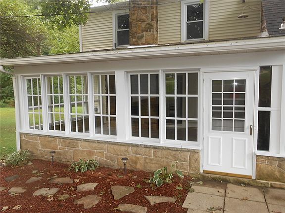 Discover the charm and quality of this beautifully crafted stone Cape Cod-style home, nestled on a serene 0.9-acre treed lot. The interior has been meticulously updated, offering a fresh and inviting atmosphere ready for your immediate enjoyment. Key Features: Completely Refreshed Interior: Freshly painted throughout, with new flooring that adds both beauty and comfort to every room. Modern Conveniences: Updated ceiling fan light fixtures and two brand-new, stylish full bathrooms enhance the home's contemporary feel. Versatile Garages: This property includes a double stall garage near the house, ideal for everyday use. Additionally, a two-story garage with a concrete floor provides ample space for a workshop or parking for 4-5 vehicles, catering to all your storage and hobby needs. Located in convenient, desirable location of Connoquenessing Township.