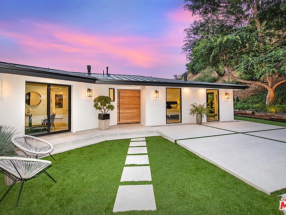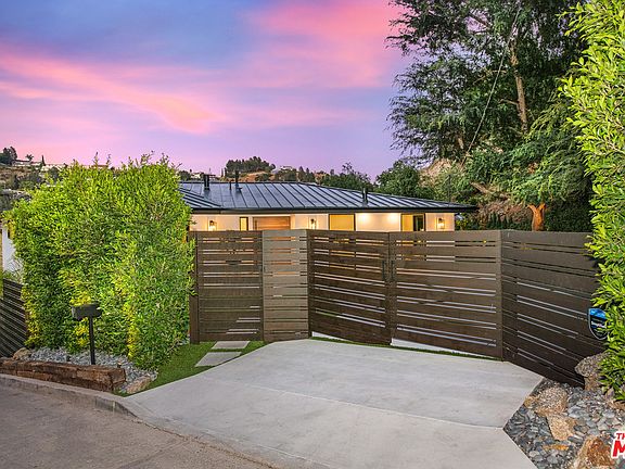 Sleek, ultra-modern, with a resort like vibe is what you will find in this completely reinvented home nestled in the Hollywood Hills. Private in every way, this mini compound is completely gated and has everything you could want for in modern day living. Focused around an open-air concept lifestyle, this home features 3 bedrooms all with private baths and an amazing midnight blue kitchen with cascading quartz island. The living room features a glass wall that disappears and flows out to a great deck that overlooks the picturesque hills. The master suite opens up to the lushly landscaped resort style setting and is highlighted by a large walk-in closet and private bath. Every inch of this structure has been elevated with the finest finishes and materials. Just minutes to the Valley, Hollywood, and an award-winning school (Carpenter). Are you looking for luxury, style, and privacy? Then welcome home!