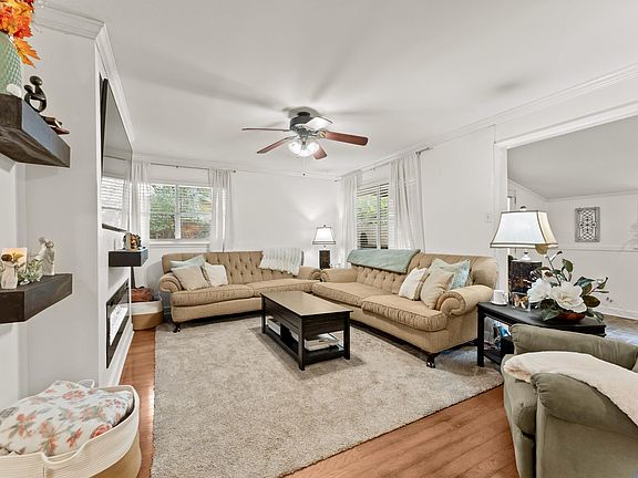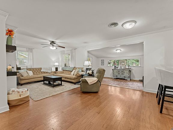 Welcome to this versatile and charming cottage in an unbeatable central location. Lovingly updated while preserving its character, the home features hardwood flooring in the living areas, tile in the kitchen, brick floors in the sunroom, and carpeted bedrooms. The kitchen offers granite countertops, a stainless gas range, silent-mode dishwasher, refrigerator, and room for a breakfast table. It opens to a spacious den with a media wall and fireplace, plus an enclosed sun porch ideal for an art studio, office, or playroom. The home includes three generous bedrooms and 1.5 baths, with the full bath featuring fresh white subway tile. The primary bedroom showcases a soft sage green accent wall. Step outside to a peaceful backyard oasis with lush landscaping, a covered deck, and a 6-foot privacy fence. The property backs up to Ollie Steele Burden for a quiet, secluded feel. Additional features include a carport, extra rock parking area, a 2020 roof, and no history of flooding in Flood Zone X with no flood insurance required. A must-see cottage on a quiet, tree-lined street close to everything.