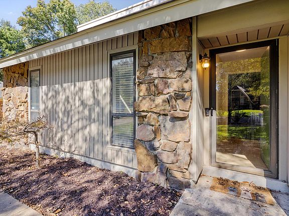 Awesome Contemporary style home in a perfect location, close to everything! You'll love the late 70's architectural features with angles, vaulted ceiling, exposed beams and great natural light. Large great room with engineered wood floors, vaulted ceiling, gorgeous fieldstone mantel around the wood burning fireplace. Kitchen with lots of cabinet space opens to the great room plus formal dining room. 3 good sized bedrooms down. Primary with walk in closet and full bathroom. XL hall bath, Upstairs is a massive bonus/4th bedroom. Great closet space. 2 car detached garage with new sensors and support. Low maintenance vinyl siding and stone. Private, fenced backyard next to beautiful wooded lot. HVAC only 4ish years old. This home qualifies for Cadence Banks 100% financing - Zero Down Payment!