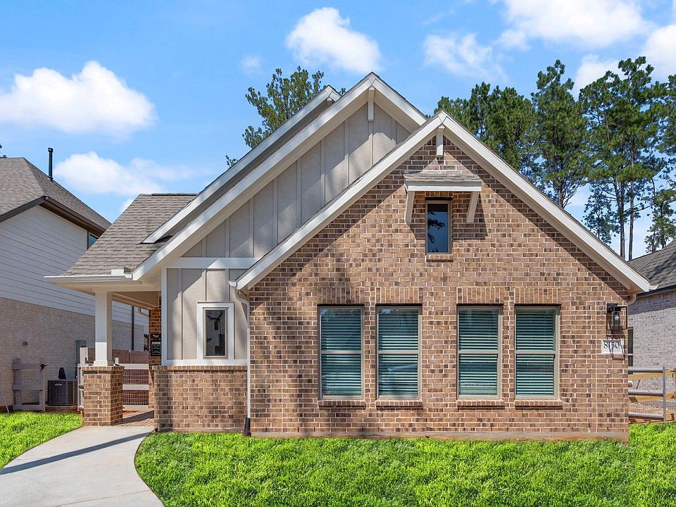 This beautifully crafted 3-bedroom, 2-bath model home offers a thoughtfully designed layout with luxury finishes throughout. Enjoy the flexibility of a dedicated flex space—perfect for a playroom, home office, or formal dining area. Step into the heart of the home where the open-concept kitchen shines with quartz countertops, built-in cabinets at casual dining, and striking gold finishes that add a touch of elegance. The spacious living area features durable wood plank floors and windows that floods the space with natural light. The primary suite is a true retreat with a bowed window, showcasing a spa-like Mega shower, dual vanities, and premium design touches. Outdoors, relax or entertain on the large covered patio—ideal for year-round enjoyment. From curb appeal to interior elegance, this upgrade-filled model home offers both style and functionality in every detail. Schedule your tour today!