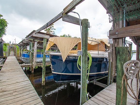 ATTENTION BOATERS! Charming 3BR/2BA home with endless coastal appeal includes boat slip & 10K LB lift! Enjoy your days in the east-facing sunroom and evenings by the sunset-facing screened lanai overlooking a sparkling pool. Features paver driveway, attached storage room perfect for your golf cart, detached powered shed, impact windows, and gas fireplace with remote start. Metal roof '22, A/C '22, water heater '23. Kitchen is big & bright, perfect for everyday living & entertaining. Boat Slip #12 at Wauregan Boat Club has power and water included all for only $350/year. Sizes appx & sub2err.