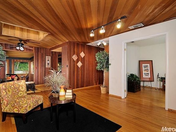 Sunset magazine in Old Fair Oaks Village! Feels like Marin with redwood, skylights & glass with full view of private treed backyard w/natural rock swim pool, waterfall, & spa, trex deck, multiple patios. Living rm has hardwood floors, f/p & wet bar. Fam rm slate floor, wood stove & natural rock. Kitchen open to dining/family rm w/custom tile, cabinets & wooden eating bar. Master bed loft & bonus storage rm off garage not incl in sq ft. Close to river & village. Prime secluded quiet site!