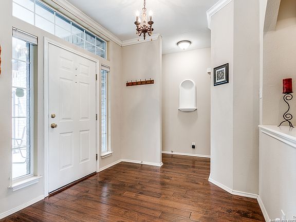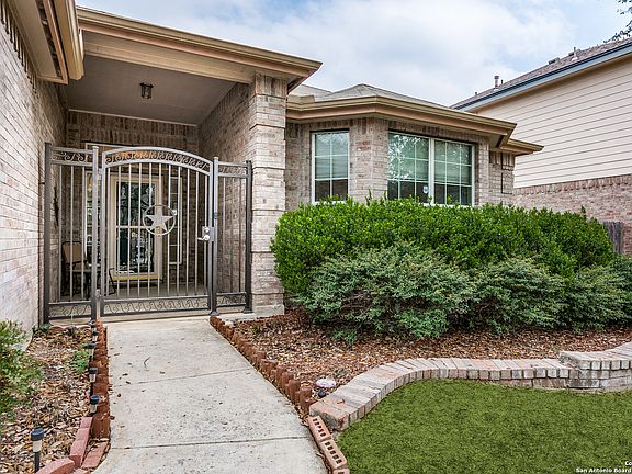 This beautiful, 1819 sq.ft., 3 Bedroom/2 bath/2 car garage home is move-in ready & accented w/ upgrades. Meticulously maintained & located in desirable Sonoma Ranch, it features new flooring, completely new HVAC system, & foundation repairs all completed within the last year w/ applicable warranties. A Texas-inspired courtyard entrance invites you into this gorgeous, open, flowing floorplan w/ rich, hardwood floors, natural lighting, architectural niches, & crown moulding. Spacious living/dining room combo w/ arched entryway looks out to the wonderful view of the backyard and Greenbelt. Home features 2 dining areas, a large kitchen w/ granite counters, an abundance of cabinets, beautiful bay window & separate desk/coffee bar. Primary BR features hardwood floors, single vanity w/granite counter & a walk-in shower. BRs 2 & 3 are carpeted for comfort & share a full bath w/ tub/shower combo. In the backyard is a fabulous deck overlooking a large, private, yard w/ mature trees along a Greenbelt. Located in NISD with excellent schools. Near 1604, UTSA, Fiesta Texas and La Cantera; the perfect home, in the perfect location, at the perfect price.
