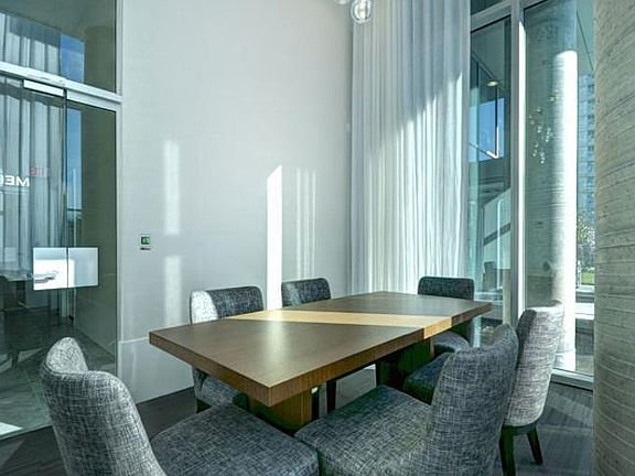 This 441sf 1 bedroom condo is bright and sunny with fantastic views from the west facing covered balcony. Real Eco-engineered Terra Wood flooring in your living dining room & a JAGA air cooling system for hot summer days. Gallery kitchen comes with Blomberg built-in and integrated appliances, marble mosaic backsplash, Italian contemporary cabinets, soft-close drawers, Caesarstone countertops, single bowl stainless steel drop-in sink and chrome single-lever faucet. Bedroom features Italian built-in wardrobe. 4 pcs bathroom has wall-hung vanity with stone countertop, mirrored cabinet, and soaker tub with shower. Rent includes one storage locker. Rent does not including parking.