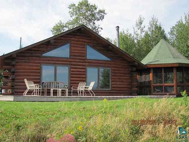 Beautifully maintained seasonal log home, with 845 ft. of spectacular, pristine, private beach frontage on Lake Superior. Loads of lake views, wrap around decks, attached screened gazebo and porch. Home features an open floor plan, vaulted beamed ceilings and a spacious sleeping loft area with built-ins. Living, dining and kitchen areas flow readily into outdoor living spaces, all offering spectacular views of Lake Superior. A 8'5x16'5" shed is available for storage, with washer and dryer hook-ups.