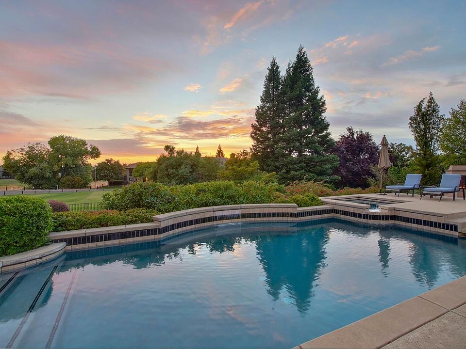 Welcome home to this single-story golf activist dream residence in the coveted Promontory Community! Featuring panoramic views of the picturesque 8th hole of Empire Golf Course from its backyard. Encompassing 2,709 square feet, this residence features four bedrooms and two and a half baths, ensuring ample space and comfort. Upon arrival, an inviting courtyard leads to an open layout with high ceilings and abundant natural light. The culinary chef's kitchen has an island with a built-in dishwasher, sink, and additional seating as a breakfast bar. The kitchen is equipped with a six-burner stove, a built-in oven, and a butler's pantry. The primary bedroom is a serene retreat featuring a cozy gas fireplace, outdoor access, an en suite bath with a powder area, dual sinks, and a luxurious soaking jetted tub. The backyard showcases a sparkling pool with golf course views, a relaxing fire pit, a bocce ball area, a covered patio with ceiling fans, and built-in speakers for social gatherings. AND Energy efficient home with OWNED solar, a NEWLY installed high-efficiency HVAC system, Nest control, additional attic insulation, and a smart vent cooler system. Located on a tranquil street ending in a cul-de-sac near parks, upscale shopping and dining options, Folsom Lake, and more!