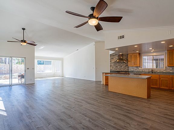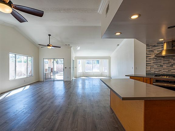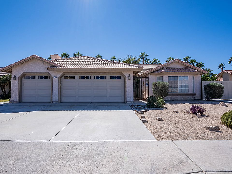 Freshly painted 4 bedroom, 2 bath family home with pool/jacuzzi. 3 car garage with kitchen access. Recently remodeled kitchen complete with new appliances - refrigerator, microwave, stove and dishwasher. Newly built side bar area near indoor fireplace, also recently remodeled with new facade. New laminate flooring and high ceilings throughout. Master bedroom with walk-in in closet, sliding door access to backyard and en suite bathroom with dual head shower. 2 additional rooms with walk-in closets and third room with large front bay window. Guest bath remodeled and repainted complete with bathtub and shower. Backyard with pool and jacuzzi as well as covered patio area. Located in Indio near the Empire Polo fields and La Quinta border. On a cul de sac street with a community park at the end of the street. Short driving distance to major shopping areas and grocery stores.