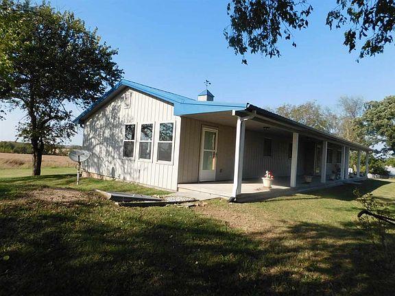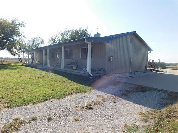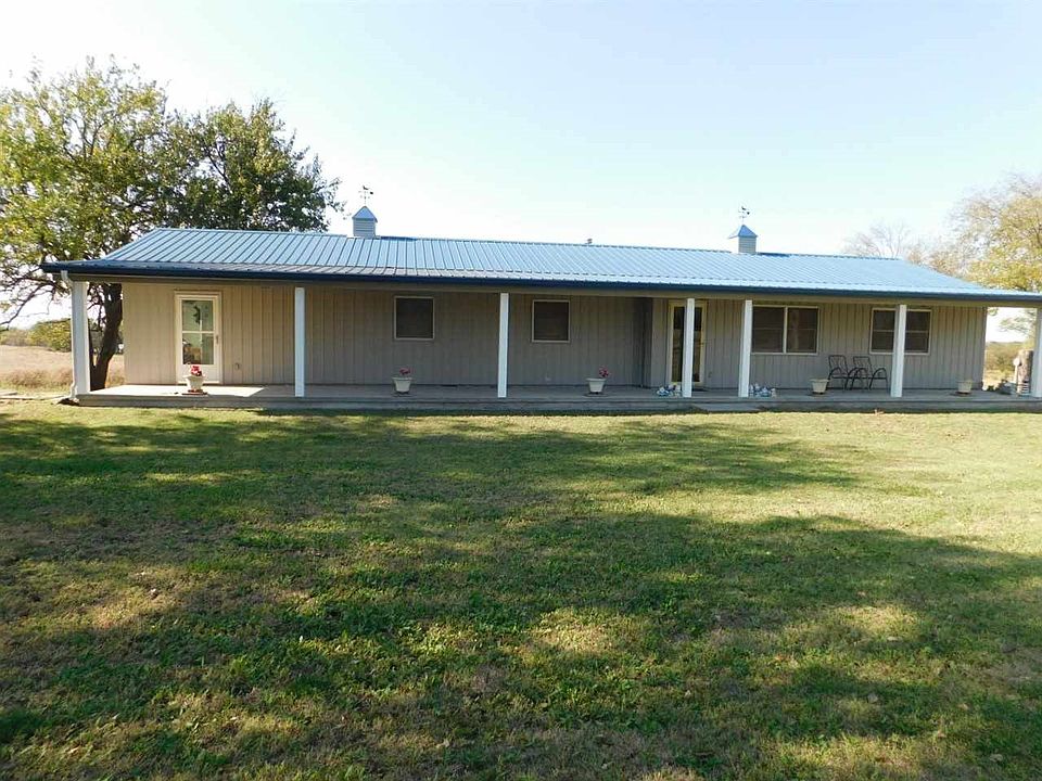 This is a very unique property. Almost 20 acres of rolling grassland with a large stocked pond and a 3-4 acre stand of trees--ideal hunting and fishing without leaving the place. The home is situated on the property so that it is difficult to see from the road. The home has two bedrooms; but with the addition of a wall, could easily have three. The living room is quite spacious, as is the kitchen and dining area. Both bedrooms are large, too. The master has access to the sunroom, and the den has access to the back deck, the patio and the garage 2-car attached garage. The dining room has sliding doors to the patio, which has an electric detractable awning. There is no maintenance to the exterior of the home with its metal roof and siding. The front porch extends along the entire front of the home. The view from every window, deck, porch and patio is priceless!! The perimeter is fenced with barbed wire, and there is an old barn, a 45'x24' garage/workshop and a 9x10 garden shed.