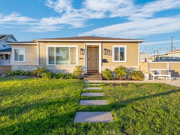Welcome to 8133 Canterbury Drive, a stunningly remodeled home nestled in Buena Park’s highly sought-after Flower Tract. This move-in-ready residence blends modern sophistication with timeless charm, offering three bedrooms and two beautifully updated bathrooms. Step inside to discover an open, light-filled floor plan featuring recessed lighting, dual-pane windows, and new flooring throughout. The designer kitchen showcases elegant white shaker cabinetry, quartz countertops, herringbone backsplash, stainless steel appliances, and gold hardware for a touch of luxury. Both bathrooms are newly renovated with custom tile work, framed LED mirrors, and high-end finishes. Outside, enjoy a private backyard with a long driveway, detached two-car garage, and space for RV parking or future ADU potential. Ideally located minutes from Knott’s Berry Farm, Buena Park Mall, and major freeways (91 & 5), this beautifully upgraded home delivers comfort, convenience, and impeccable style in one of Buena Park’s most desirable neighborhoods.