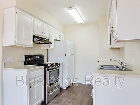 The kitchen features white cabinetry, ceramic countertops, and a full appliance package including stove range, refrigerator, and dishwasher. You'll also have in-unit laundry hookups for added convenience.