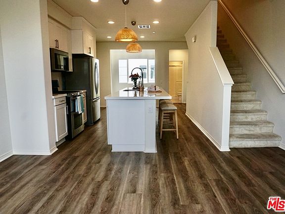 Luxury built in 2018 townhouse at the highly desirable Village Walk community. This open floor plan end unit located in the heart of the Downtown Downey area. 3 bedroom and 4 full bathroom features with beautiful laminate flooring throughout the main living area, highly upgraded modern white shaker cabinet, quartz kitchen counter tops, Whirlpool stainless steel appliances, auto-shutoff motion sensor lights and more. Spacious private outdoor patio into a FIRST floor bedroom with full bath. Main living level with Den, Kitchen, Living and Dining room on SECOND floor. THIRD floor features a walk-in laundry room, Spacious master suite with walk-in closet and large secondary bedroom with walk-in closet. Close to the movie theater, Porto's and much more.