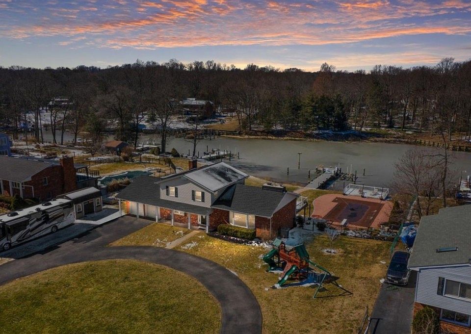 Welcome home to your new waterfront paradise! You will fall in love with this stunning 3 level, open floorplan colonial which features water views from almost every room. Not a single detail was overlooked in the updates to this home, from the gourmet kitchen with shaker cabinets and granite countertops to the cozy living room with a fireplace. This spacious home includes three inviting fireplaces in total. The soaring ceilings and countless windows allow natural light to fill the entire house. Entertain your guests in the gourmet kitchen and dining areas, which lead to your very large deck overlooking Main Creek and your private inground pool. A main level office is the perfect place for your work-from-home needs. Step into your master suite and you will see the picturesque view of the water that could welcome you every morning. The downstairs finished walkout basement offers endless possibilities for fun and entertaining. It leads to another outdoor entertaining area to gaze at the serene water. Take a stroll down the paved path to your private pier on Main Creek. The pier comes complete with a boat lift and jet ski lift. Just a short boat ride separates you from the Chesapeake Bay and all of the enjoyment it has to offer.