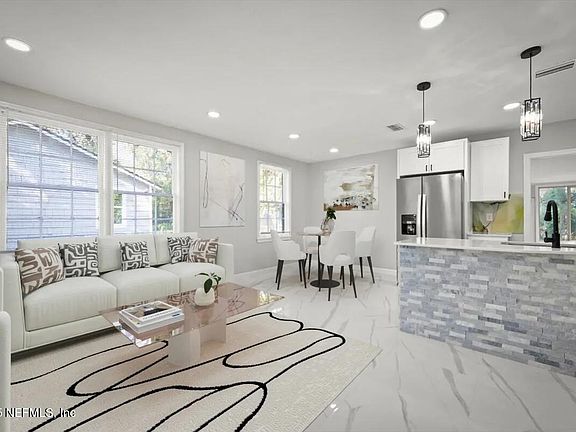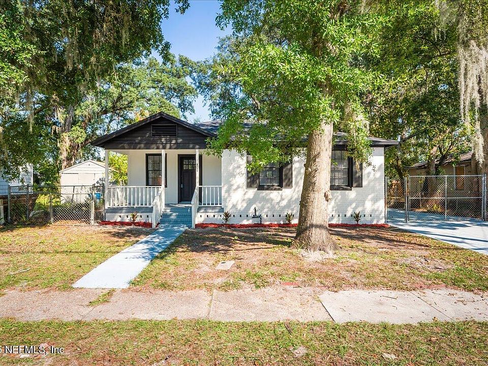 Beautifully renovated brick home with a large 252 sq ft heated/cooled Florida room. NO HOA/CDD. Spacious driveway with plenty of parking space. Front porch to enjoy your morning coffee/tea. Plenty of natural lighting in living space. New tiled and vinyl floors throughout. New kitchen cabinets with Quartz countertops. Updated bathroom. Updated electrical and plumbing. New stainless steel appliances. Roof 2025. New HVAC, 2025 Water Heater. Covered back patio. Spacious back yard to entertain family and guests. Fenced backyard. Large heated and cooled stoage/workshop. for all your activities and hobbies. Located near I-95, JAX Airport, and UF HEALTH. Jax Zoo and FSCJ are a short drive away, also shopping, dining and entertainment close by. Schedule your showings today!