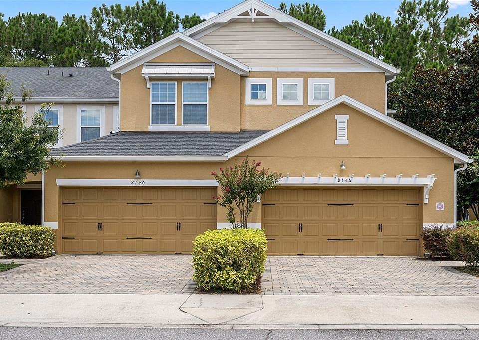 WELCOME HOME! This pristine and private Oasis Cove END-UNIT townhome is ready for its next loving owner! NO REAR NEIGHBORS! Walking in, you are greeted by a large, OPEN FLOORPLAN living space with views into the kitchen. The kitchen is complete with stainless steel appliances, SOLID STONE COUNTERTOPS, large pantry, and bar-top counter seating! Upstairs is the primary suite, featuring a large walk-in closet, SOAKING TUB, seperate walk-in shower, and DUAL SINKS. The two guest bedrooms are highlighted by tons of NATURAL LIGHT and closet space, and feature their own shared guest bathroom. Back dowstairs, you can step outside your sliding glass door to find a wonderfully shaded COVERED PATIO that looks onto the natural green space in the back of the community - a lovely place to enjoy morning coffee! The gated Oasis Cove community features a COMMUNITY POOL, clubhouse, fitness center, playground, and walking trail along the community pond. The location also cannot be beat as you are mere minutes from Walt Disney World, Hamlin shopping, top-rated schools, and more! Don't miss this prime opportunity!