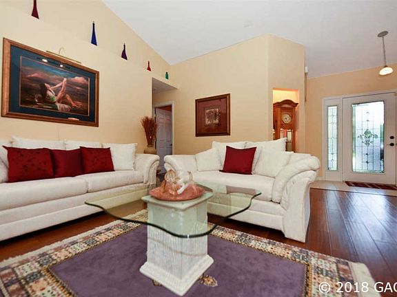 This fantastic 4 bedroom/2 bathroom + pool home is a great place to settle down. After one tour, you wonât want to move your family anywhere else. Curl up in front of the living room wood burning fireplace on a cool fall night or sit down for a snack at the breakfast bar. Youâll love the open-plan kitchen and its upgraded high-end granite, extra large island, stainless steel appliances, and ample cabinet and countertop space. The spacious master suite includes separate oversized his-and-hers closets, an extra large standing shower, and a separate deep-soaking bathtub. The massive fenced backyard is a home oasis with a fountain and the in-ground heated pool. The lush greenery and flowers make the entire space feel like a paradise. This family-friendly neighborhood home is calling your name! Located in a great school zone with easy access to UF and Shands. Walk or bike to Haile Village the and Archer Braid Trail.