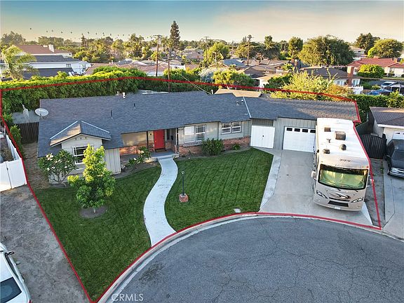 Welcome to this wonderful home located in the charming city of Downey, crafted for the avid entertainer, this fantastic pool home on a peaceful cul-de-sac is ready for you to move in and enjoy! A winding pathway through a lush lawn leads to an inviting covered porch. Step inside a vibrant interior clad in elegant crown molding and a combination of gorgeous parquet and wood-style flooring. A newer gas fireplace keeps the living room comfortable while glass sliders allow a seamless indoor/outdoor flow. Share intimate meals under the soft glow of the dining room’s opulent chandelier.