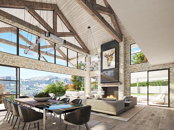 Welcome to one of the most unique custom homes in Promontory, a new Clive Bridgwater design set on three private acres in the quiet Deer Crossing neighborhood. Wrapped in hand-laid stone and barn wood with full interior and exterior radiant heat, this home was positioned to capture wide-open Uintah Mountain views that bring natural light and calm into every major space. Large floor-to-ceiling sliders open to heated outdoor living areas with a bar that connects directly to the backyard, a full outdoor kitchen, a waterfall feature, a fire pit, and two private grass areas. The main level offers a thoughtful layout with three bedrooms, including a beautiful primary suite with two separate bathrooms and closets. A standout feature is the private fitness and golf wing, where the full gym and golf simulator share their own exterior entrance, allowing trainers or instructors to come and go without entering the main home, and the gym opens to a hot tub patio with mountain views. The lower level includes a movie theater, guest suite, customizable bunk room, and a temperature-controlled wine cellar holding approximately 2,000 bottles, while the third-level office with its own bathroom enjoys some of the best views in the home. Car collectors will love the 2,000 sq ft garage with 14-foot ceilings designed for lifts and six or more vehicles, plus a heated wrap-around driveway for easy winter access. Surrounded by aspens and pines in a peaceful setting known for wildlife and with walking-trail access to Promontory's main Village Clubhouses, this home comes fully furnished, with a full golf membership available. This is a rare opportunity to own a standout custom build in one of Promontory's most private settings.