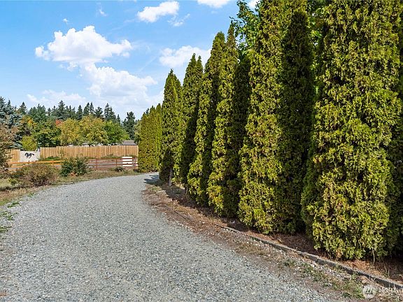 Perfectly maintained home on 1.20 acres, 3 bedrooms plus 2 full baths. From the back porch property has an amazing Mt Rainer view. Laminate hard wood flooring throughout the main living spaces. Open-concept design with vaulted ceilings. Beautiful kitchen with granite countertops, and an abundance of cabinet space. Two guest bedrooms adjacent to den/office. Primary bedroom located on opposite side of home with full bathroom. Detached garage is 960 Sq Ft, easily accommodates 4 vehicles. Fully fenced yard with entry gate. Great location near base, etc.