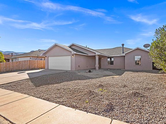 Step into this charming 3-bedroom home where comfort, space, and heart come together. The home opens into a spacious living room, anchored by a warm, welcoming fireplace—the perfect place to gather with loved ones as we head into the holiday season. The kitchen is beautifully equipped with ample cabinets and counter space, stainless steel appliances, and a comfortable breakfast bar that flows easily into the dining area, making everyday meals and celebrations feel effortless. The inviting primary suite features a relaxing master bath complete with a double vanity and a soothing jetted tub—your perfect retreat after a long day. The second bathroom offers a large walk-in shower, and all bedrooms include ceiling fans and soft carpeting, creating a cozy atmosphere throughout. A convenient laundry room with washer and dryer adds to the home's functionality. Step outside and enjoy a backyard designed for both relaxation and fun—a covered patio, a dedicated firepit area, and breathtaking mountain views that make every moment feel special. A two-car garage and refrigerated air add to the comfort and convenience this home offers. Warm, welcoming, and ready for new memories—this home is a perfect place to settle in just in time for the holidays.