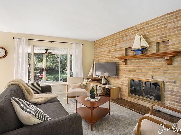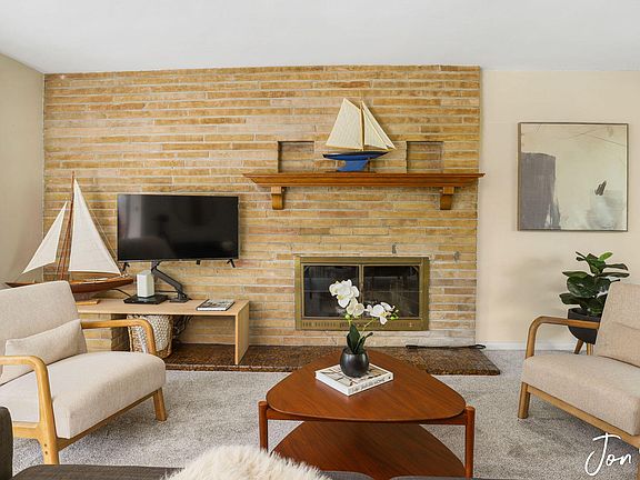 Adorable mid-century ranch w/ partial views of Lake Mac, and 200 yards from Lake Mac access! Inside, you'll love the main level living! 3 bedrooms, 2 bathrooms, laundry, sunroom, kitchen, breakfast nook, dining room, and living room w/ fireplace - all on the main floor! Plus a large unfinished basement (w/ a 2nd fireplace!) w/ tons of potential. This home is the perfect balance of mid-century charm w/ modern updates. Brand new flooring throughout, plus new windows, concrete, gutters, furnace, a/c, underground sprinkling, and appliances updated in the last 5 years!