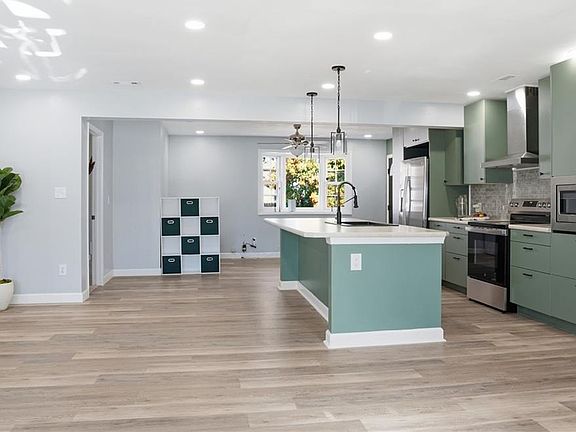 Cozy new carpetBright open floor planLvp flooringFresh lightingLarge islandNew ceiling fansKitchen is a showstopper
