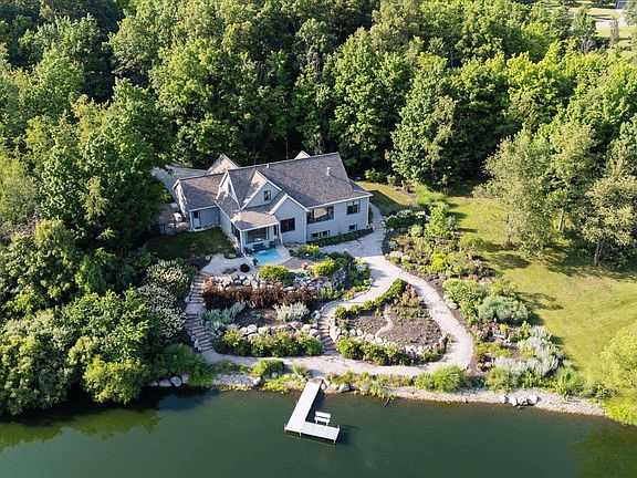 OPEN HOUSE, Sunday, 7/13, 1-3pm**Welcome to this beautifully maintained 3-bedroom, 3.5-bath home with a loft and a full, finished daylight basement, featuring a versatile bonus room perfect for a fourth bedroom, office, or hobby space. Nestled on a professionally landscaped lot overlooking a serene 12-acre pond, this home offers luxury living both inside and out. Enjoy fishing for large bass and bluegill or cruising the water with a small electric boat; the private dock remains with the home and stays in year-round. A retractable awning provides shade over the patio, where you can take in stunning pond views and vibrant landscaping. Inside, the chef’s kitchen shines with quartz countertops, a built-in double oven, induction cooktop, large walk-in pantry, and an open floor plan ideal for entertaining. Luxury vinyl plank flooring flows throughout the basement while lament flooring runs through the main living areas, combining style with durability. Additional features include: whole-house generator; security system; hydraulic lift in gas-heated garage (up to 200 lbs); Spacious loft area for flexible living. Don’t miss your opportunity to make this one-of-a-kind property your next home!