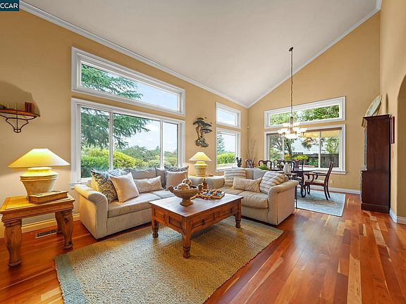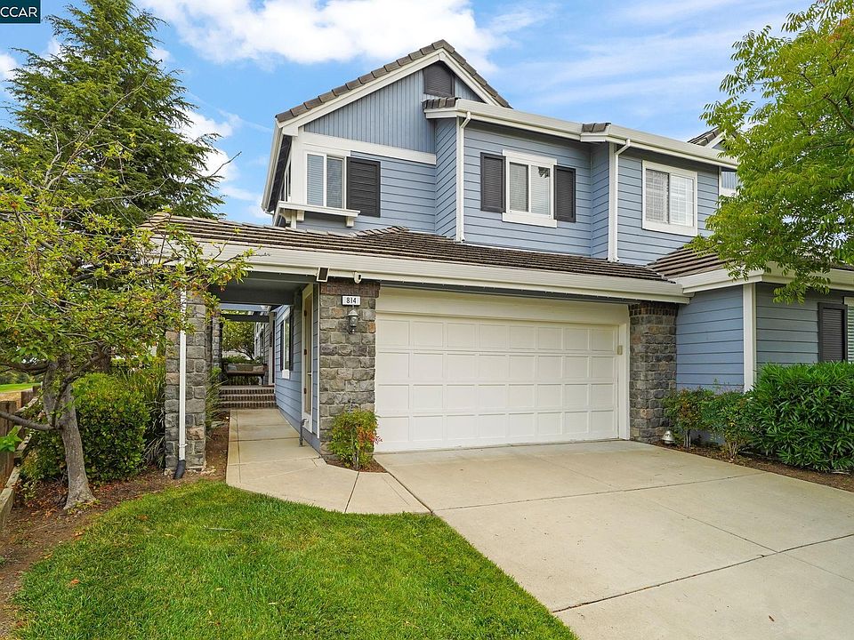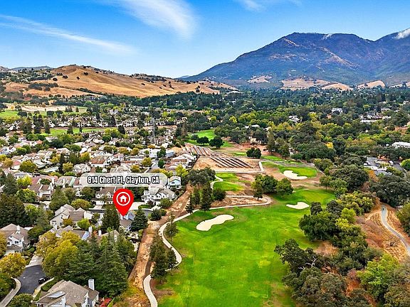 814 Chert Pl., Clayton 94517 1904 Sq. Ft. Lot 5000 Sq. Ft. Price $895,000. This rare gorgeous property is located at the end of a quiet cul-de-sac on Premium golf course view lot in desirable Oakhurst Black Diamond neighborhood. Remodeled duet w/custom oversized windows & views of Oakhurst Golf Course & majestic Mt. Diablo. Lush backyard professionally landscaped w/irrigation system, lighting. Existing electrical for hot tub. Cathedral ceilings, crown moulding & sweeping views from living/dining room. Grand staircase w/balcony. Spacious Primary bedroom includes soaring ceiling, walk-in closet & luxury walk-in travertine shower & floor. Guest bedroom includes pull-down wall bed. Bedroom ceiling fans. Updated open gourmet kitchen features custom high-end finishes w/granite counters, travertine backsplash w/decorative metal inserts, custom cherry cabinets, authentic wood floors & commercial-grade gas appliances. Dining bar is open to the family room with custom built-in cherrywood entertainment center, surround sound & gas fireplace. This home is conveniently near a path alongside a scenic creek walking distance to quaint downtown. HOA includes a sparkling pool, spa & dog park area. SOLAR & BATTERY STORAGE ARE OWNED, 100% PG&E OFFSET which adds substantial value!