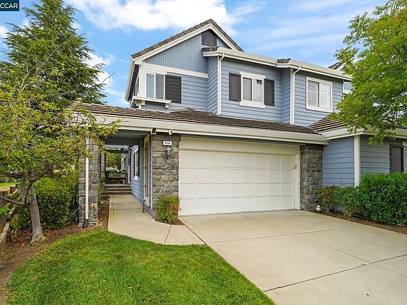 This rare gorgeous property is located at the end of a quiet cul-de-sac on Premium golf course view lot in desirable Oakhurst Black Diamond neighborhood. Remodeled duet w/custom oversized windows & views of Oakhurst Golf Course & majestic Mt. Diablo. Lush backyard professionally landscaped w/irrigation system, lighting. Existing electrical for hot tub. Cathedral ceilings, crown moulding & sweeping views from living/dining room. Grand staircase w/balcony. Spacious Primary bedroom includes soaring ceiling, walk-in closet & luxury walk-in travertine shower & floor. Guest bedroom includes pull-down wall bed. Bedroom ceiling fans. Updated open gourmet kitchen features custom high-end finishes w/granite counters, travertine backsplash w/decorative metal inserts, custom cherry cabinets, authentic wood floors & commercial-grade gas appliances. Dining bar is open to the family room with custom built-in cherrywood entertainment center, surround sound & gas fireplace. This home is conveniently near a path alongside a scenic creek walking distance to quaint downtown. HOA includes a sparkling pool, spa & dog park area. SOLAR & BATTERY STORAGE ARE OWNED, 100% PG&E OFFSET which adds substantial value!