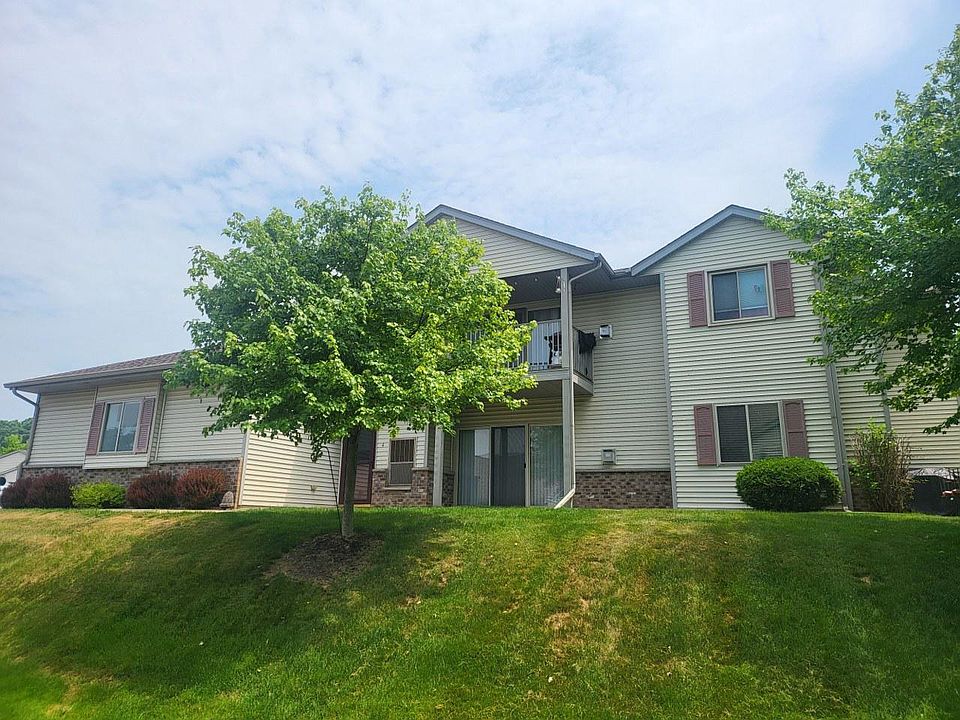 Looking for a pet friendly condo? Look no further. This 2 bedroom, 2 full bath upper unit can be rented and allows 2 cats and/or 1 dog up to 30 pounds. Second floor Dekora Woods Condos were built with the most amazing 19 x 6 foot balconies. Lots of room to spread out and take in the fresh air. This unit has cathedral ceilings, is open concept, has a gas fireplace, laundry room, attached 2 car garage and a private entrance. The eat in kitchen is very spacious with plenty of cabinets, and it has a convenient snack counter, too. This unit borders the woods and is getting a new driveway along with updates done by the seller which include windows and furnace. Slinger Schools and easy access to Hwy 41. Property may qualify for a USDA zero down loan. Check with your lender.