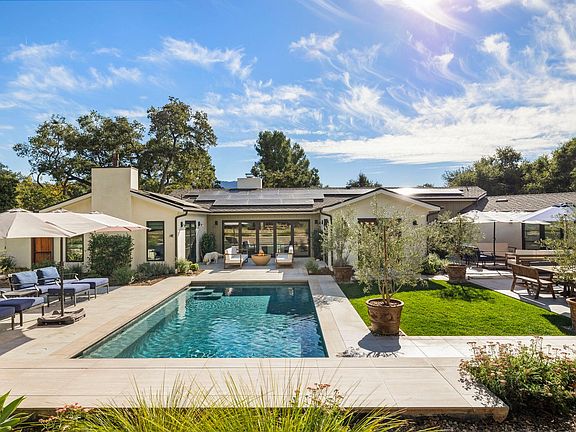 Welcome to an unparalleled 1.3-acre luxury retreat in the heart of Ojai! Located in the exclusive Arbolada neighborhood, this gated resort-style, fully furnished residence offers the perfect blend of modern sophistication and timeless elegance, providing an extraordinary living experience. Completely rebuilt in 2023, this impressive 4bd/4bt single-level residence boasts expansive living areas with high ceilings, telescoping glass doors, and open-concept spaces seamlessly integrating indoor and outdoor living. The Gourmet kitchen is a Chef's dream, equipped with top-of-the-line appliances. Carefully curated finishes, high-end materials, and bespoke details throughout the property, from countertops to exquisite hardwood floors, elevate every corner of this home. The lavish primary suite is a private sanctuary with a spa-like bathroom. Enjoy the luxury of the private pool and spa, lushly landscaped gardens, and majestic Oak trees. An entertainer's dream, the impressive outdoor living spaces are perfect for alfresco dining, lounging, and hosting intimate gatherings. Experience the ultimate in luxury living in beautiful Ojai! Available 1/15/2025 Dog will be considered with excellent references.