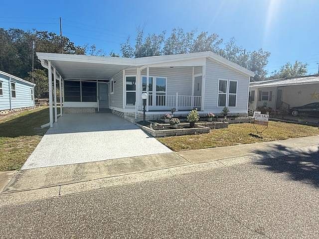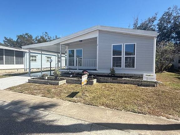 Located in quaint Tarpon Springs, Tarpon Glen is a 55+ retirement mobile home community which features on-site fishing, shuffleboard, and a community swimming pool all set among the beautiful palm trees that the area is famous for. Tarpon Glen also offers you a spacious clubhouse to host social gatherings, organized community outing, and planned activities. Enjoy the nearby beaches, state parks, and world-famous Sponge Docks. This 1988 home is being sold TURN-KEY, so bring your clothes and you are home! The home features CPVC pipes, and a reverse osmosis sink in the kitchen. The vapor barrier was replaced in 2022, and the driveway was coated with poly in 2024. The master bath was replaced in 2020, and the front deck was replaced in 2021. The home also features a generator panel. Additionally, the siding, gutters, downspouts, and vinyl windows were all replaced in 2023. The living room features neutral walls, vinyl flooring, cathedral ceilings and a shiplap detail wall with a large TV mount. There is a built-in cabinet for storage, newer furnishings, and front door entry. The kitchen was fully remodeled in 2022 and features tile flooring, a tile backsplash, soft close gray shaker cabinets, granite counters with a bar overhang, pendant lights, a double stainless steel sink and upgraded faucet. There are updated appliances, and an eat-in area. The dining room has vinyl flooring and board and batten walls. There is upgraded lighting and nice furnishings. The master bedroom is a beautiful room and is very large. There is a large walk-in closet and another bonus closet. There is vinyl plank flooring and neutral walls along with plantation shutters and beautiful furnishings. The master bedroom opens to the amazing ensuite that was remodeled in 2020 and features a double vanity, large linen closet, extra corner storage, tile flooring, and double barn doors to separate the toilet and walk-in shower room. The second bedroom is a large room perfect for hosting guests and features a double closet and entry to the Jack and Jill bathroom. The Florida room is a very large space with tile flooring, air conditioning making the room usable all year long, bamboo shades and is open to the breezeway and shed as well as the private fenced backyard. There is an inside storage room that is a great bonus room that could also be used as a home office. The inside laundry has cabinets above the updated washer and dryer along with the door to the Florida room. There is also a desk area in the home that can be used for a work desk or craft space. The terraced backyard is very private and is an open canvas to plant as you wish. It is very quiet and serene! All Florida Mobile Home Sales Inc. cannot guarantee or warrant the accuracy of this information or condition of this property. The buyer assumes full responsibility for obtaining all current rates of lot rent, fees, and pass-on costs. Additionally, the buyer is responsible for obtaining all rules, regulations, pet policies, etc., associated with the community, park, or home from the community/park manager. All Florida Mobile Home Sales Inc is not responsible for quoting of said fees or policies. LOT RENT: $910 and includes water, sewer, lawn, trash and taxes. Additional water usage billed bi-monthly.