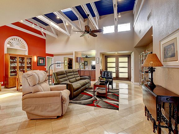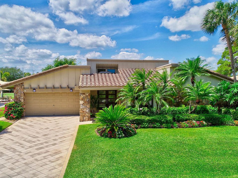 Meticulously maintained golf view home in highly sought Seagate Country Club at the Hamlet. Open concept kitchen, dining and living space with soaring beamed ceilings, skylights and wet bar. Two master bedrooms, both ensuite, plus powder room. Convertible third bedroom is currently used as an office. Enjoy the golf view lot from screened porch and paver patio. Fenced back yard, with ample room to add pool & spa if desired. Roof replaced in 2013, a/c 2016 & newer SS appliances.& HW heater. Front door, garage door & skylights are hurricane rated impact. Spacious FL room also under air cooled by split a/c (2020). Rare find at this price point! Membership in Seagate CC is optional, not mandatory. Best gated community location for access to downtown, beach, I-95, etc!