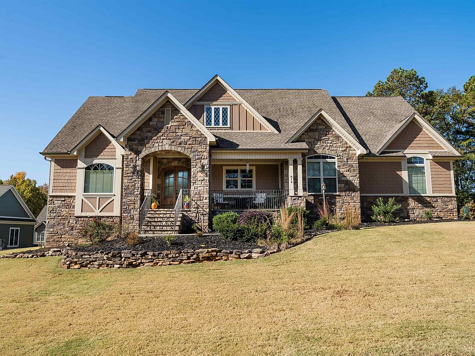 The Creeks at Woodfin- This custom built home is located in a gated section of Woodfin Ridge Golf community. The brick and stone accents give the home it's Craftsman style that is highly favored and desired. The home is within walking distance to the neighborhood clubhouse, golf course, tennis courts, pool, and playground areas. The beautiful front porch leads you into the entry foyer with hardwood floors and greatroom with gas log fireplace. The open floor plan is great for entertaining and family gatherings. The kitchen has a center island, granite countertops, custom cabinetry, tile backsplash and under counter lighting, The split bedroom plan offers privacy for guest rooms that share a hall bath. The owners suite has a full bath with coffered ceiling, accent lighting, garden tub, separate shower, double sink, and two walk in closets. The bonus room has a full bath and a large walk out space that is unfinished. Great storage space! The laundry room has a utility sink and storage cabinets. The 2 car attached garage is oversized at 26x26. The screened porch overlooks an outdoor fireplace and patio area. The outdoor living space is perfect for relaxing on cool fall mornings and evenings. The Wooodfin community social membership is required of all homeowners. (approx $59 per month) This fee covers access to the amenities. Golf fees are an additonal charge if desired. Access to Lake Bowen is within minutes from this home! Great interstate access, schools are close by, and shopping/restraunts are an easy drive! This home has so much to offer!
