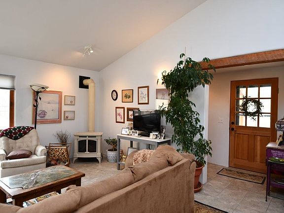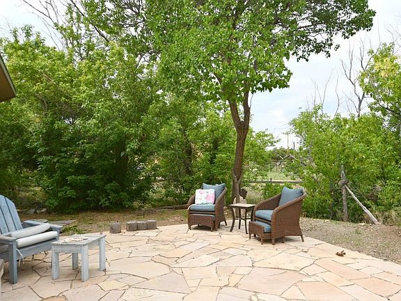 SUNNY SIDE UP. This light, bright 2BR/2BA/1CP 1,618 sq. ft. home will put come sunshine in your life and a smile on your face. Tucked off Kit Carson Rd. you'll find the home surrounded by green and bordering a seasonal stream. The open living area with high ceilings and lots of windows provides an airy feel. The kitchen is cheery and boasts a pantry and skylight. The dining area opens out onto the large patio highlighted by a beautiful apricot tree which adds to a feeling of spaciousness. Display your art on the hallway separating the master and guest bedrooms each with their own bath. Keep fresh herbs handy in the solarium which also doubles as a deluxe laundry room. The location makes living easy too with easy access to town for shopping or gallery hopping and if the great outdoors is your focus you'll find USFS up the road, both Angel Fire and Taos Ski Valley about 30 min. away and golf , fishing, and rafting available. The original home was adobe built around, but the property was remodeled in 2015 with updates and additions. It features both gas "wood" stoves and subfloor radiant heat, pro-panel roofing, nat'l gas, community water, and a split flow septic. Hunter- Douglas shades grace the windows throughout. Isn't it time to find your "happy place"?