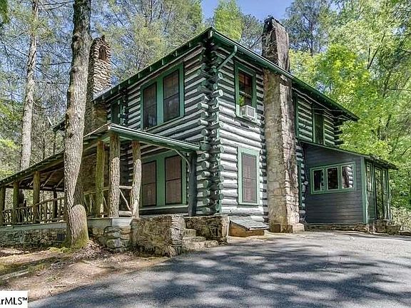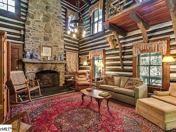 Nestled in the dappled shade of mature mixed woodlands within the heart of beautiful South Carolina mountains, step back in time to this historic property built in the 1920âs. This remarkably unique mountain retreat is located minutes from downtown shopping, restaurants, hiking, fishing, boating, golfing, horseback riding and is located by both the Rocky Bottom Creek on the north side of the property and the Jocasee Gorges Heritage Preserve on the west side. Mature landscaping surrounds the home and its gracefully winding entrance. This property is sold with 9.93 acres that includes mountain streams, creeks, and a trout stocked pond. The acreage offers mature trees as well as a courtyard with a horseshoe pit and picnic area. In the main cabin there are 2 bedrooms, 2 baths and can sleep 6-8 people, a full kitchen, dining room, living room, suspended loft, natural wood paneling, original stone fireplace, and a balcony overlooking the perfectly preserved property. The wrap around porch offers ample space for both sitting and dining while running the entire length of each side of the home, affording maximum enjoyment of the tree-framed mountain view and four-season climate. The second cabin is located over the two car garage. The loft offers 3 bedrooms and 1 bathroom while accommodating 5 guests comfortably. The third cabin has 2 bedrooms, 1 bathroom, a full kitchen, two spacious balconies while sleeping 6-7 people. There is also a âœHoneymoon Suiteâ on the lower level of this cabin with a separate stone path entrance. This area has 1 bedroom, 1 full bathroom with a large and private balcony. This home is being conveyed with furniture included with the exception of a few small items. Also reservations booked out for the next 90 days must be honored after closing when considering this property. Donât let this private get away slip you by. The peaceful setting of these cabins offer unappalled relaxation.