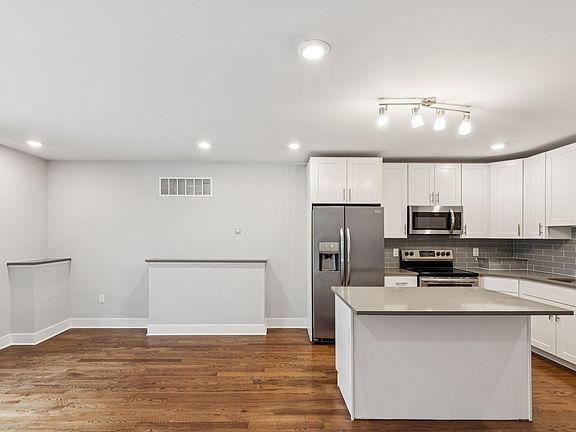 Private rear yardSleek white cabinetsGorgeous countertopsLarge windowsStunning hardwood floorsSpacious kitchenStainless steel appliances