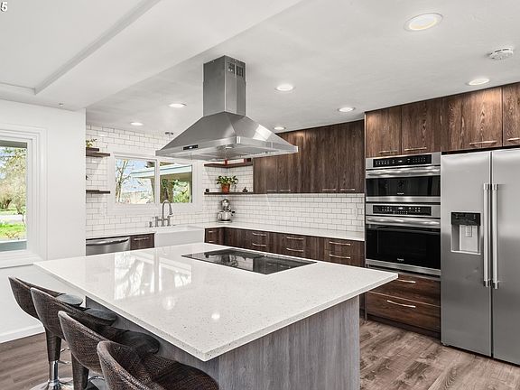- Features: Builtin Range, Dishwasher, Disposal, Island, Pantry, Updated Remodeled, Double Oven, Solid Surface Countertop