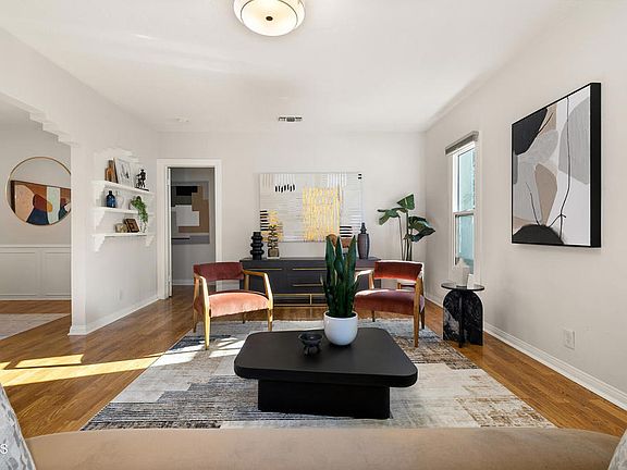 Welcome to this charming North Monrovia traditional, thoughtfully updated with luxury features throughout. A classic covered front porch leads to a spacious, light-filled living room with wood laminate flooring and an open flow to the formal dining room. There you'll find custom wainscoting accented by two built-in corner hutches. The chef's kitchen showcases stone counters, high-end stainless-steel appliances including a Wolf range, second wall oven, built-in microwave, and warming drawer, along with ample cabinetry with smart storage features, and a convenient side entrance to the gated driveway. The primary suite is a luxurious retreat, complete with a separate dressing room, walk-in closet, and spa-inspired bath. Spoil yourself with the steam shower, deep soaking tub, double-vanity sink, and designer finishes throughout. Two additional bedrooms extend the home's indoor-outdoor flow, opening to a private deck and landscaped backyard. The full hall bath features beautiful marble tile flooring, a marble topped vanity, and tiled bath with storage niche. Conveniently attached yet separate from the main house, the laundry room includes a utility sink and extra storage. At the end of the long driveway sits a fully finished garage with drywall and an epoxy floor creating a polished space ideal for a gym, hobby room, or flex space, with the potential for an ADU (buyer to verify with the City). The fully fenced backyard offers a spacious stone patio, low-maintenance artificial turf, vinyl fencing, and thoughtfully landscaped areas with continued potential for more. Additional highlights include central HVAC, updated electrical, newer insulation, and fresh interior and exterior paint. Close to shopping, restaurants, and transportation, this property captures the essence of Southern California living in the heart of Monrovia, all on a fantastic street and prime location.