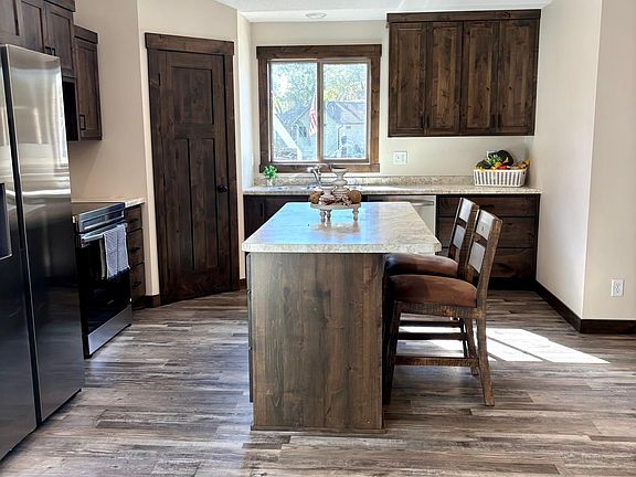 This stunning new construction tri-level home is complete and offers 4 bedrooms, 2 bathrooms with a bright, open layout and high-end finishes throughout. The main level features a kitchen and dining area with high def counter tops, custom shaker-style knotty alder soft-close cabinetry, stainless steel appliances, a corner pantry, and luxury vinyl plank flooring. Upstairs, you'll find two bedrooms, a full bathroom with marble countertops and a linen closet, plus a living room with recessed lighting and overlook views. The primary bedroom includes a walk-in closet and ceiling fan, while the lower level adds two more bedrooms, a second bathroom, and an additional living room—ideal for guests or flexible living. The fully insulated and sheet rocked three-stall garage boasts two 8' high insulated doors and a 9' wide third stall door, perfect for oversized vehicles or workshop space. With central air and a high-efficiency furnace, this home is designed for lasting comfort, modern style, and everyday ease.