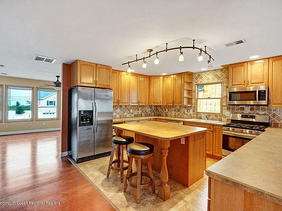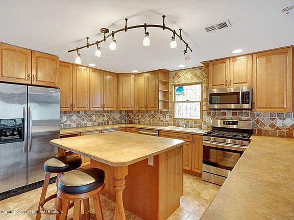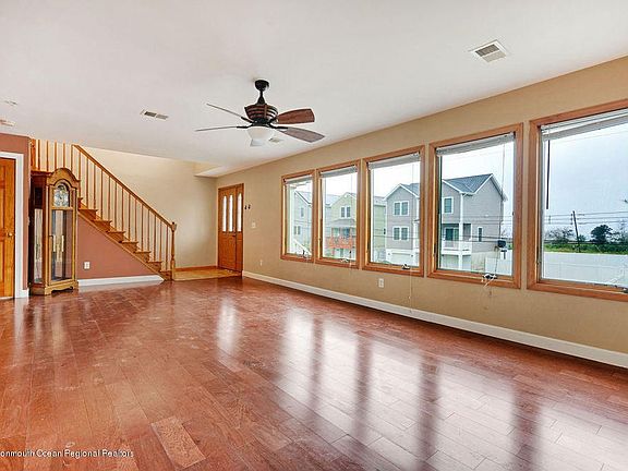 This 3 level custom colonial sits in one of the most highly sough after Union Beach neighborhoods right next to the beach and dining/entertaining. Breath taking oceanic and NYC views from all 3 floors of this beautiful home. Master bath solarium with Jacuzzi and glass shower. Unique open floor plan and large kitchen island to compliment along with contemporary kitchen updates including custom cabinets, tile backsplash, all new stainless steel appliances with sale also including Maytag washer and dryer. New deck door sliders with built in blinds. Only minutes from GSP and NYC transit access/ferry- a commuters dream! Recently installed new hardwood floors. Sits on an oversized lot and has 2 large garage bays and is located on quiet dead-end side of Prospect.