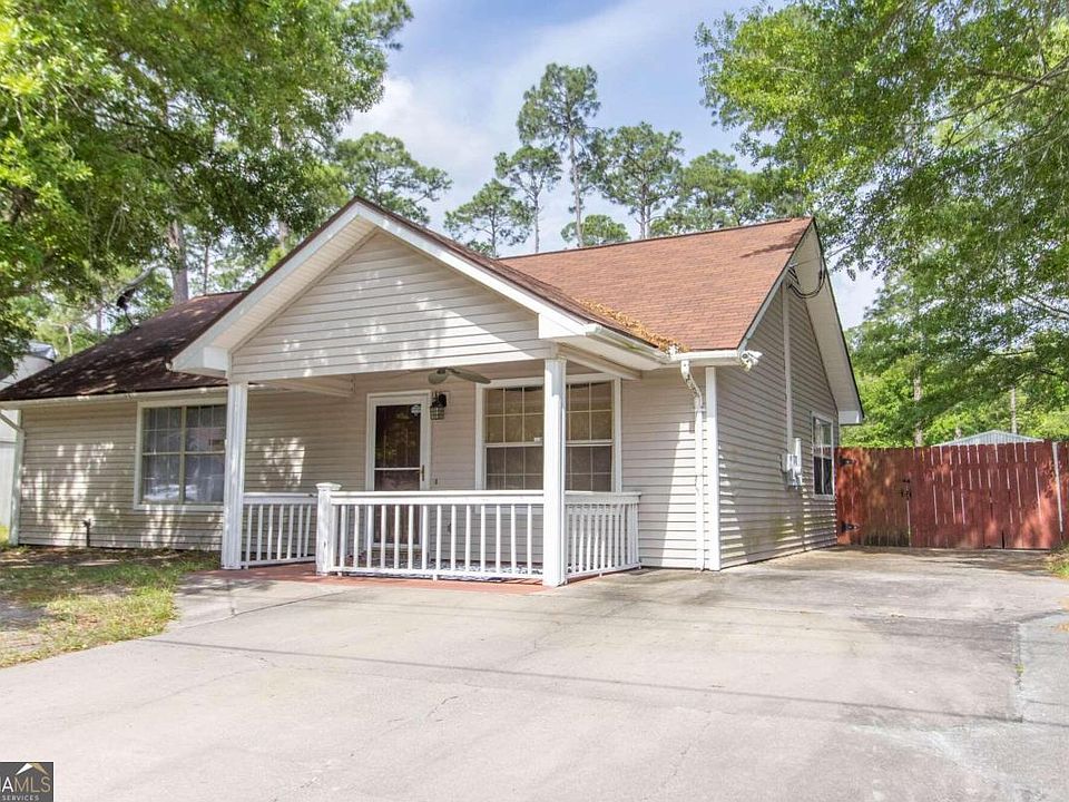 Location & Affordability in the heart of Hinesville with NO HOA! Conveniently located between gates 8 and 1 on Fort Stewart, this cozy home with 3 bedrooms, 2 full bathrooms features luxury vinyl plank flooring throughout (NO CARPET!), vaulted ceiling in the great room, privacy fenced backyard that backs up to a serene wooded area for ultimate privacy, extended driveway for ample parking and spacious front porch perfect for sippin' sweet tea in your rockin' chair. Homes in this price range don't last - don't delay, schedule your showing TODAY!