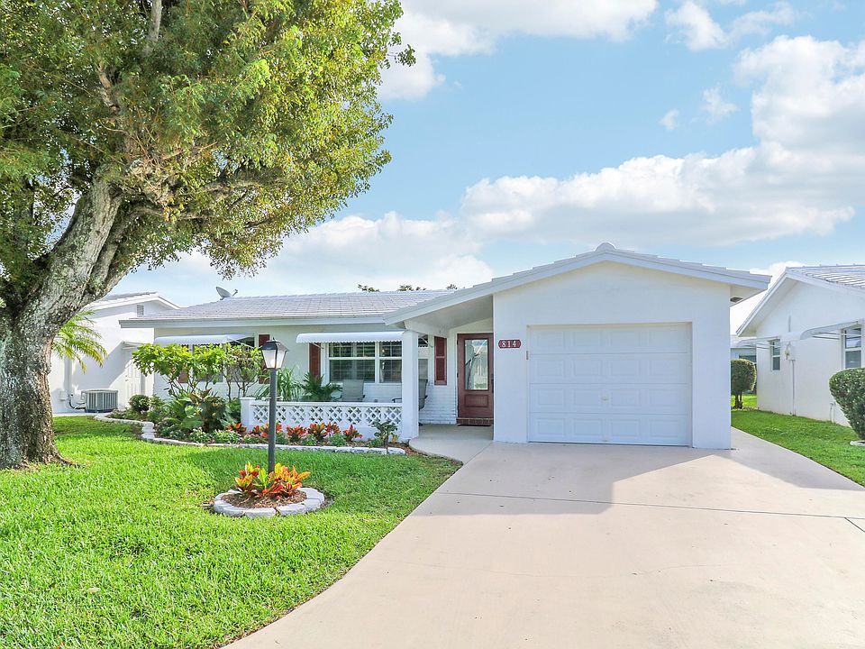 Welcome to this spacious 2-bedroom, 2-bath Edgewood model located in the desirable 55+ community of Palm Beach Leisureville in Boynton Beach.This well-maintained home offers 1,428 sq. ft. of comfortable living space,1-car garage, & the peace of mind of a NEW 2025 ROOF. Back patio perfect for relaxing & enjoying a barbecue. Crown Molding throughout. REC LEASE PAID! Residents of Palm Beach Leisureville enjoy an exceptional lifestyle with amenities, including 3 heated pools, fitness center, and an 18-hole golf course free for residents.The low HOA provides outstanding value, covering lawn care, exterior painting & roof cleaning.Move-in ready & perfectly located close to shopping, dining, entertainment, Palm Beach Airport, & the beach--this home is ideal for full-time or seasonal living!