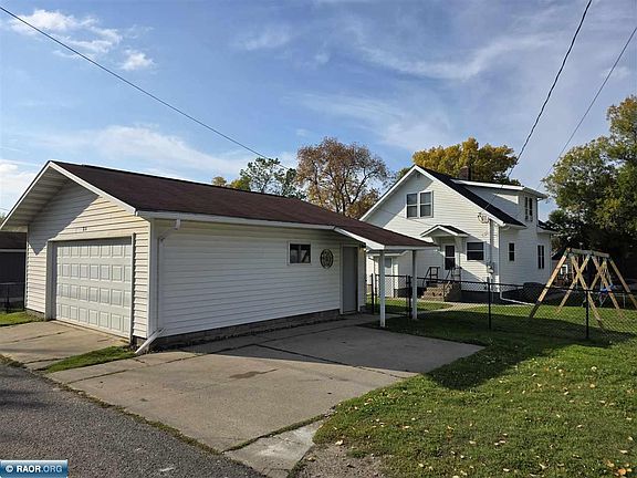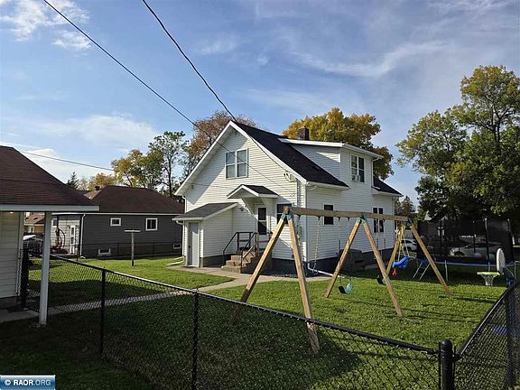 Excellent Eveleth home with a huge fenced yard and tons of updating and remodeling throughout! 4 bedrooms / 1.75 Bathrooms / Large 2 stall garage with car port and additional off street parking / Natural gas heat / New 200 amp electrical / Vinyl windows / Large closets / Main floor bedroom and bathroom / Rec area in basement / Many updates throughout including kitchen, bathroom, flooring, paint, fixtures, and more! A great home!