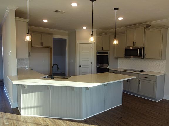 Ellie II by South Georgia Homes is a 5 bedroom Modern Farmhouse. Downstairs offers a formal D/R that has a coffer ceiling that could be used as an office. Kitchen with oversized peninsula and over looks breakfast room and Great Room. Quartz kitchen counter tops, tile back splash, large pantry and double ovens stainless steel appliances. Great Room has a fireplace with shiplap wall over the mantle. LVP throughout living areas and carpet in bedrooms. Coming in from the garage has a large drop zone with mud bench and closet for extra storage. Downstairs bedroom and full bathroom. Upstairs has large owners suite with trey ceiling, owners bathroom with tile shower/glass door, garden tub and double vanity. This will be one of the largest walking closets you'll find and it has access to the laundry room for convenience. 3 guest bedrooms upstairs, full hall bath room with double vanity. Covered front and back porch and the back porch has an outdoor fireplace great for entertaining. 30 year Arch shingles. Welcome Home!
