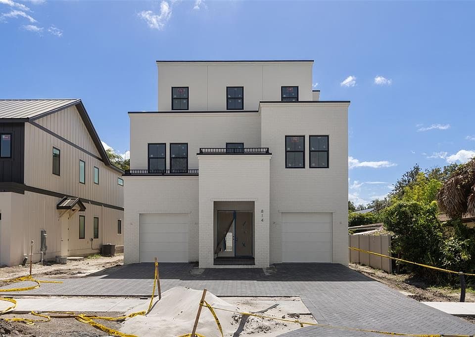 Under Construction. Welcome to this architecturally striking, three-level home offering 4,084 square feet of thoughtfully designed living space. Upon entry, you’re greeted by a stunning archway above the foyer that opens to an expansive open-concept living area featuring a fireplace and a stylish dry bar — creating a warm and inviting atmosphere ideal for everyday living and social gatherings alike. The chef’s kitchen is truly an entertainer’s dream, showcasing an oversized island, stainless steel appliances, a custom walk in pantry and custom cabinetry throughout — beautifully curated to inspire gatherings of all kinds. Seamless access to the living, dining, and outdoor spaces makes this floor plan both functional and inviting. A half bathroom downstairs adds extra comfort and convenience for guests. Upstairs, you’ll find the impressive primary suite — a peaceful retreat filled with natural light, featuring a generous walk-in closet and a luxurious spa-inspired bath with dual shower entry and a soaking tub — the perfect place to unwind at the end of the day. The second level also includes two additional bedrooms, a guest bathroom, and a conveniently located laundry room for added functionality. The third level showcases a spacious bonus entertainment and family room complete with a full bathroom, a private bedroom, a custom built-in wet bar, and a massive balcony — the ideal space for entertaining guests or enjoying Tampa’s beautiful sunsets. The outdoor space is equally captivating, featuring an outdoor kitchen, pool, and a detached guest house with one bedroom, one full bathroom and a fully equipped kitchen — ideal for extended family, guests, or a private office. Nestled in the highly desirable Riverside Heights neighborhood, this residence offers the best of Tampa living — just minutes from Downtown Tampa, Armature Works, Michelin-starred restaurants, the Tampa Riverwalk, TGH, and Tampa International Airport