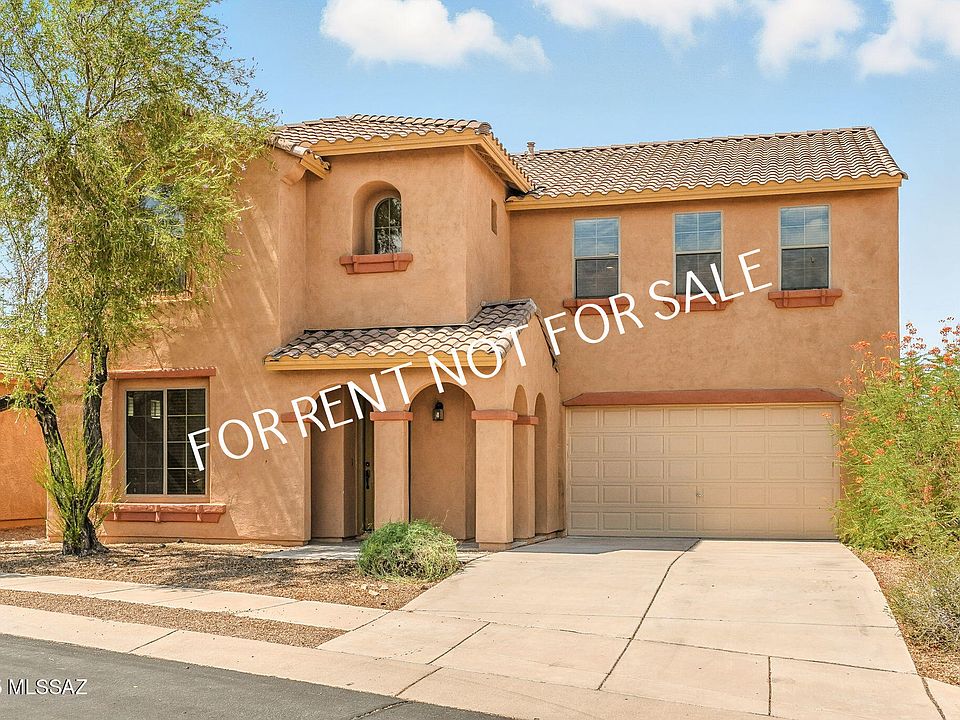 AVAILABLE 09/01/2025. Built 2007 -4 BED 3 BATHS +2 LOFTS - 3190 sq.ft home located in the Desirable Gated Entrada Bonita Subdivision in Rancho Sahuarita. This well taken care home is perfect for entertaining. Home welcomes you with a formal living and dining area adjacent to a spacious family room and kitchen. Kitchen features a center island, a spacious walk in pantry and plenty of cabinetry space. Appliances included: refrigerator, stove, dishwasher, built in microwave w/d hookups. A lighted staircase leads to all bedrooms upstairs. The tranquil master suite features dual sinks, walk-in shower, garden tub, and a private balcony. Three additional bedrooms and **two lofts--ideal for relaxing or entertaining