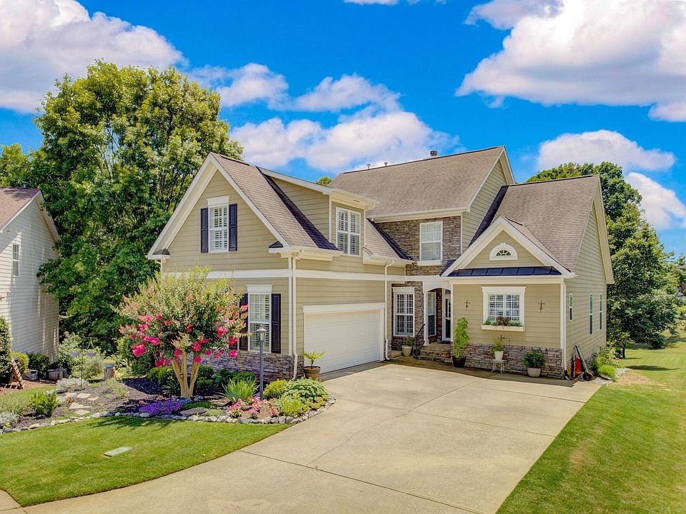 Wonderful District 5 home with a basement! This 3 Bedroom, 2.5 bath with bonus room is in a quiet cul-de-sac of River Falls Golf Community. The manicured .4-acre lot backs up to a wooded green space with personal access to the nature trail. The basement offers an additional 1500+ SF of space with stud walls and rough-in plumbing in place so you can finish it as you desire. The bright and inviting two story great room features a real wood burning fireplace with gas starter. The kitchen is open to an eating area full of natural light overlooking the nature area and a door leading to an oversized deck with retractable awning. The spacious Master Suite, with sitting area, is on the main level and includes a full bath with two vanities and two walk in closets. As you walk upstairs you will find a loft area perfect for office space, a study area, or a den. The two bedrooms share a nicely sized hall bath, and the bonus room could also serve as a fourth bedroom. Some other features include utility sink in the garage, walk in laundry room on the main level, security system, and plantation shutters. Come see this beautiful home in the prestigious River Falls golf community! This home has so much to offer PLUS a phenomenal Neighborhood!