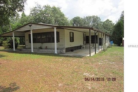 Spacious, double wide mobile home on 1 acre with no deed restrictions or home owners association just east of Zephyrhills with medical facilities, restaurants and shopping available. A large kitchen with an island for 6, has stove top, wall oven and dishwasher. Lots of extra space includes Florida rooms on both sides, one with a functioning hot tub and a separate laundry room. Master bedroom has ample room for a king sized bed. Bay windows, makeup counter, walk in closet and large bathroom with double sinks and walk in shower comprise the rest of the master suite. There is also a second bedroom and bath. Outside extras include storage areas, power pole and drain for motor home, covered parking and a workshop complete the property.